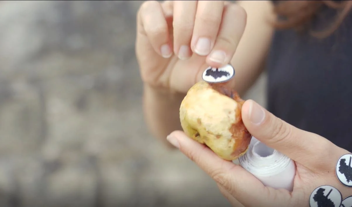 The performance based on an apple tree that was shedding its fruits on a hill I walked up daily while in Slanic Moldova. The performers collected apples that had fallen on the hill in hand sewn bags, stood in a line down the hill and processed the apples based on how apples are processed in factories ; cleaned, waxed and labelled with a sticker which was a drawing of the tree and rolled it back down the hill.